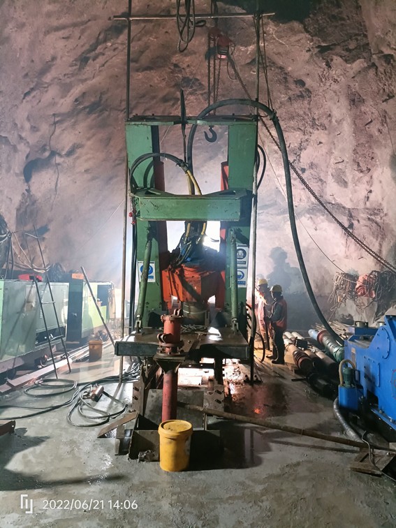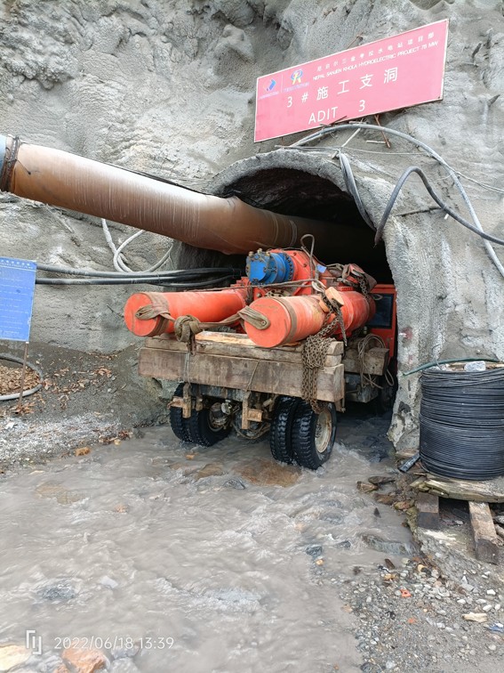 尼泊尔三金考拉水电站,第二条60°斜井250米,设备安装中,一切准备就绪即将开钻。